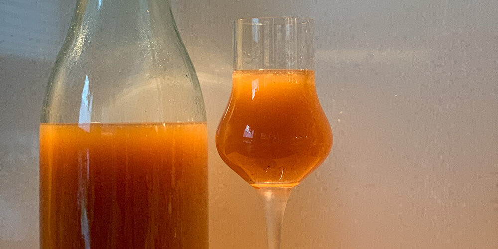 - Jetzt stehen in der Flasche noch einmal zwei Wochen Reifung an und dann werden wir das Ganze noch ein oder zwei Mal durch einen Kaffeefilter filtern. Geschmacklich ist das aber schon jetzt ein richtiger Genuss. — Prost!